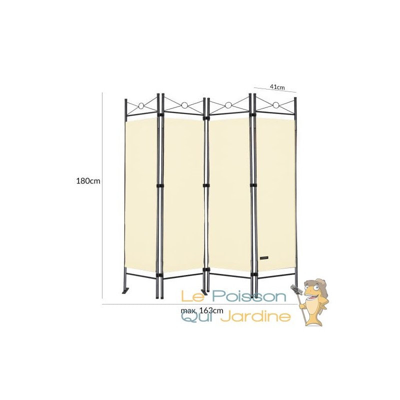 Le paravent méditerranéen crème allie design, intimité et fonctionnalité. Sa structure en métal noir et son tissu crème offrent un équilibre parfait entre robustesse et douceur visuelle. Léger, stable et facile à déplacer, il constitue un choix idéal pour aménager ou décorer vos espaces tout en conservant élégance et confort.
