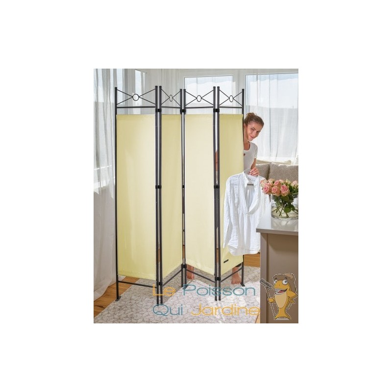 Avec son style méditerranéen raffiné, ce paravent séduit par son esthétisme doux et lumineux. Son coloris crème s’accorde facilement à tout type de décoration intérieure, du moderne au bohème chic. Sa structure en métal laqué noir apporte contraste, robustesse et durabilité, garantissant une stabilité parfaite dans le temps.