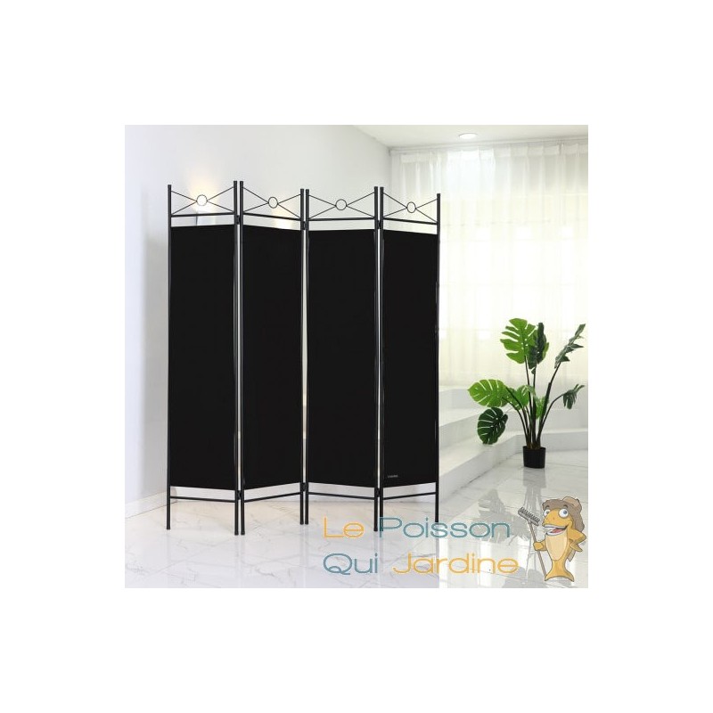 Le cadre en métal laqué noir offre une base solide et durable, contribuant à la stabilité exceptionnelle du paravent. Cette caractéristique garantit que l'écran remplit sa fonction de séparation avec efficacité, sans risque de déséquilibre ou de chute. La hauteur généreuse de 180 cm et la largeur de 163 cm sont en parfait accord avec la vocation d'intimité du paravent, créant une barrière visuelle significative.