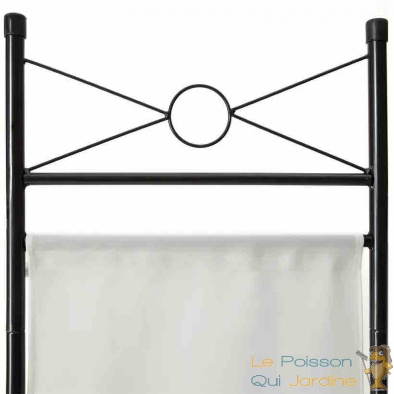 Le cadre en métal laqué noir offre une base solide et durable, contribuant à la stabilité exceptionnelle du paravent. Cette caractéristique garantit que l'écran remplit sa fonction de séparation avec efficacité, sans risque de déséquilibre ou de chute. La hauteur généreuse de 180 cm et la largeur de 163 cm sont en parfait accord avec la vocation d'intimité du paravent, créant une barrière visuelle significative.