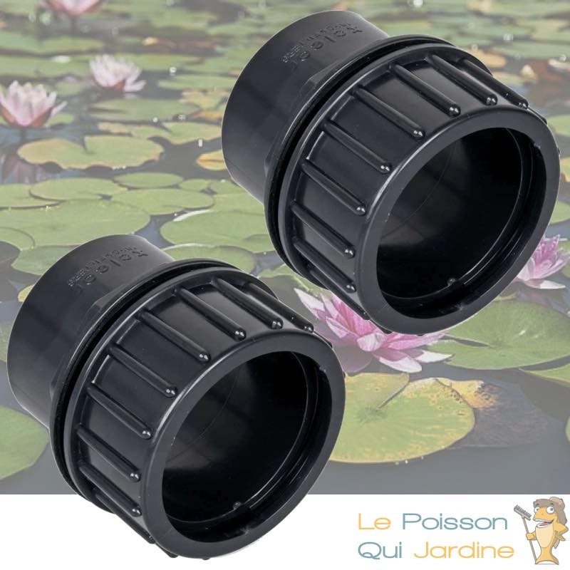 Passe paroi à visser ou encore appelé traverse pour bassins de jardin et pièces d'eau extérieures fournis avec avec des joints d'étanchéité.