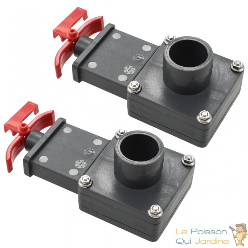 Les vannes pour bassins de jardin ou piscines en 38mm offrent une solution pratique et fiable pour contrôler le débit d'eau dans votre système aquatique. Dotées d'un mécanisme de verrouillage à clip, ces vannes permettent une manipulation aisée pour ouvrir ou fermer complètement le flux d'eau selon vos besoins.