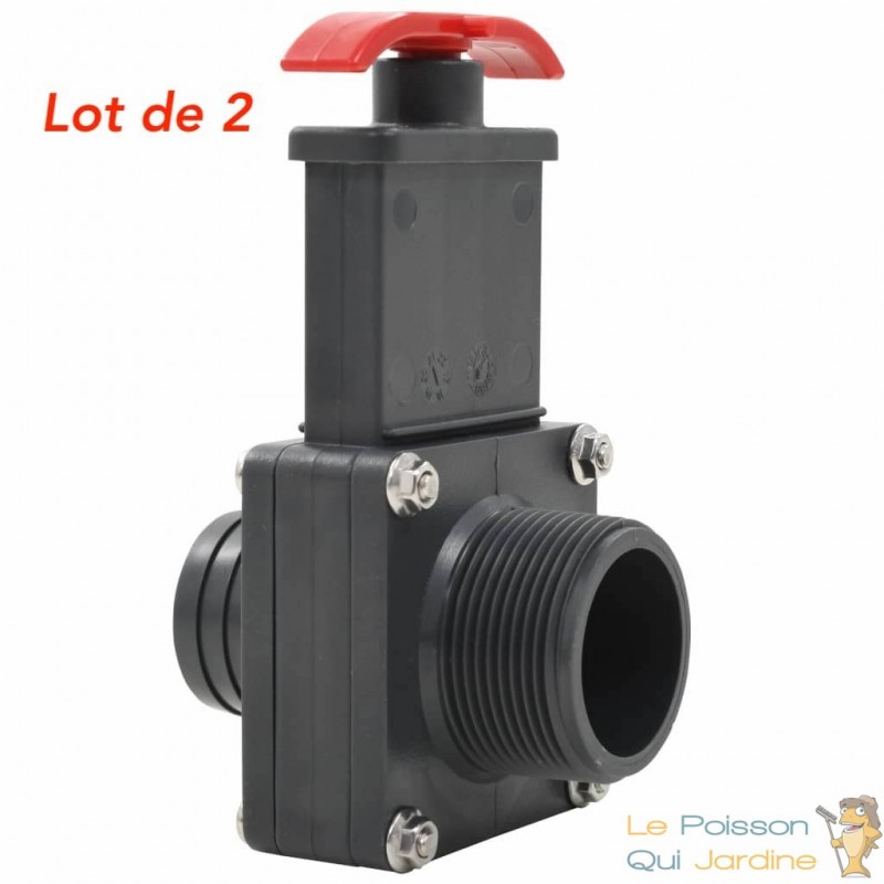 Les vannes pour bassins de jardin ( Lot de 2 vannes Embouts A Visser ) ou piscines en 38mm offrent une solution pratique et fiable pour contrôler le débit d'eau dans votre système aquatique. Dotées d'un mécanisme de verrouillage à clip, ces vannes permettent une manipulation aisée pour ouvrir ou fermer complètement le flux d'eau selon vos besoins.