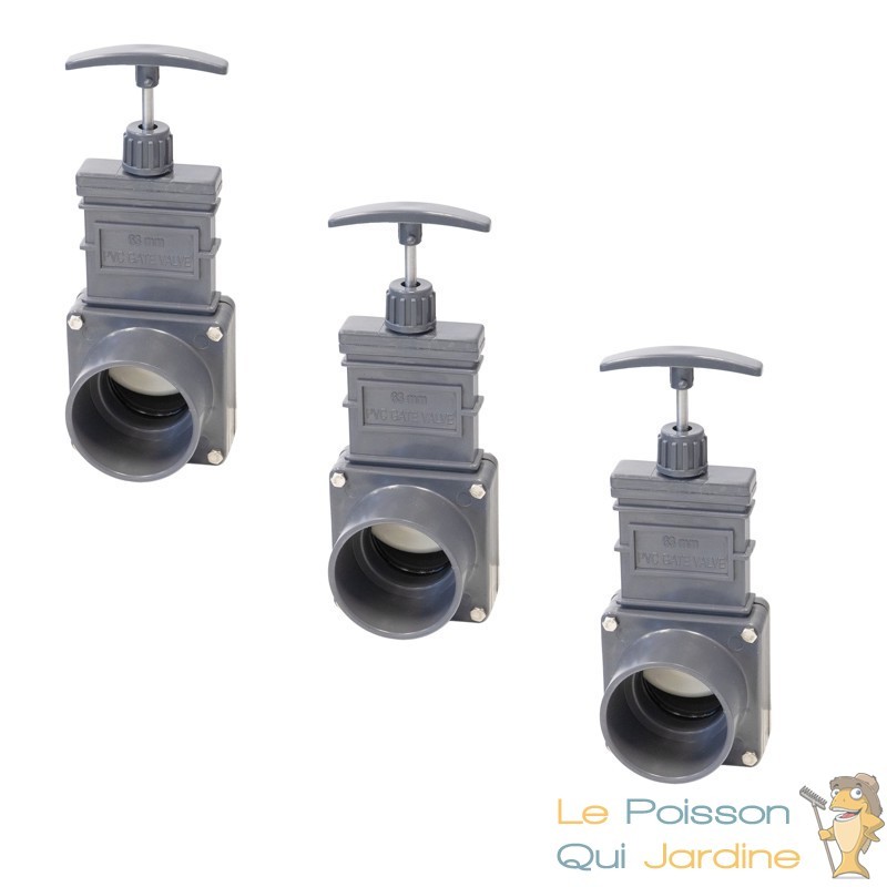 La vanne guillotine ( aussi appelée vanne à opercule ou encore vanne à tiroir ) est utilisée pour stopper et arrêter le transit d'une eau ( chargée ou pas ) sur un réseau de distribution. Que ce soit pour les piscines ou des filtres de bassins de jardin.
