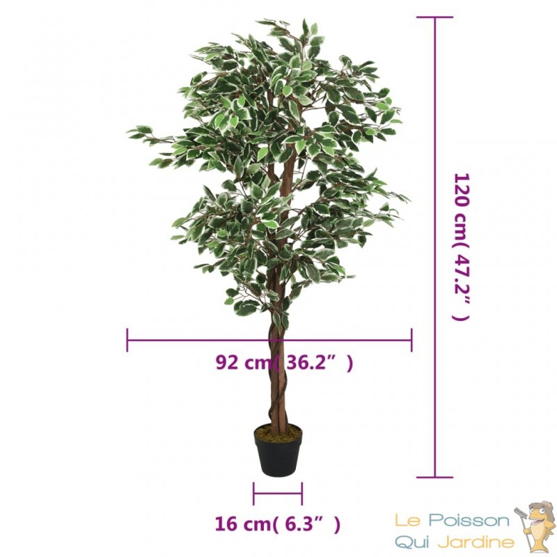 Ce magnifique ficus artificiel représente un choix idéal pour ajouter une touche de verdure à votre entrée, votre salon ou votre bureau. Avec son apparence remarquablement réaliste, il est difficile de distinguer ses feuilles en fibre textile de celles d'un vrai ficus. Les troncs en bois ajoutent une touche d'authenticité avec leur texture et leur teinte naturelles, conférant à l'ensemble de l'arbre une luxuriance et une vitalité saisissantes.