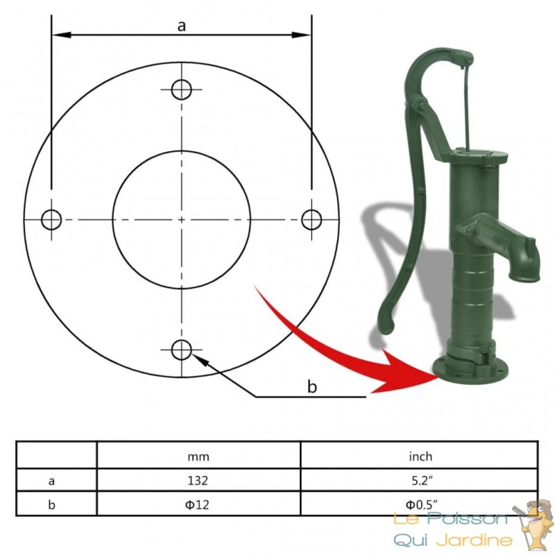 Il est recommandé de vider la pompe en hiver pour éviter tout risque de gel à l'intérieur, assurant ainsi une utilisation pérenne. En somme, cette pompe à eau manuelle constitue un choix fonctionnel et décoratif pour satisfaire vos besoins en eau tout en embellissant votre jardin.