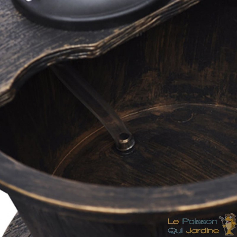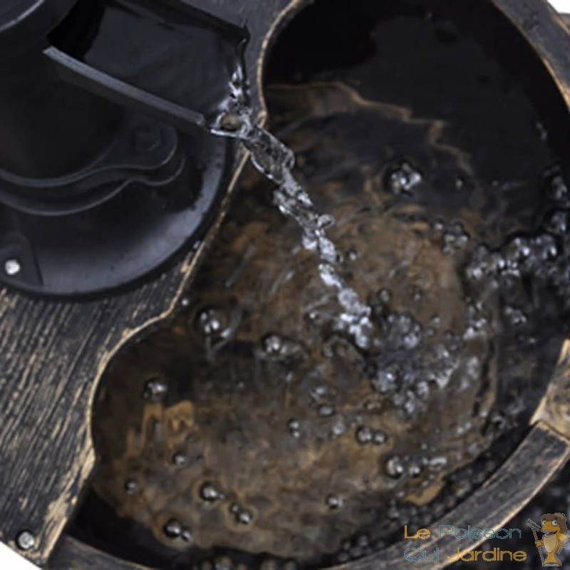 Son mécanisme de pompe à eau assure un flux fluide et continu, créant un spectacle apaisant et relaxant qui invite à la méditation et à la contemplation. L'eau, constamment recyclée, ajoute une ambiance rafraîchissante à votre intérieur tout en évoquant le charme pittoresque des fontaines de jardins anciens. Que vous l'installiez dans votre salon, votre bureau ou votre véranda, cette fontaine apporte une touche d'élégance rustique à votre environnement, transformant chaque instant en une expérience sensorielle immersive.