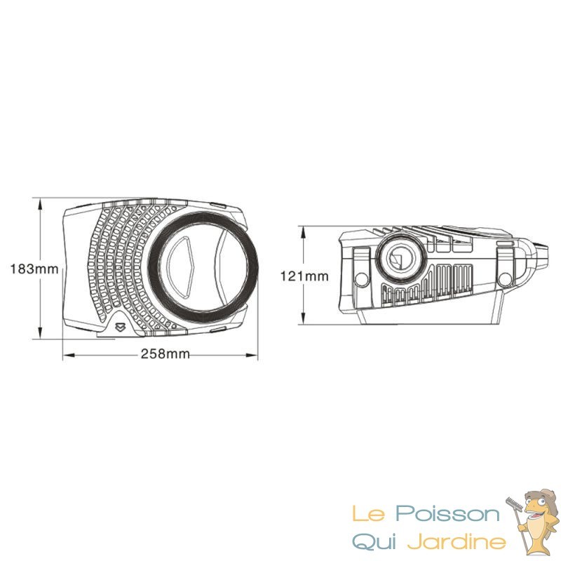 - Débit de 10000 l/h + 10m de tuyau 40mm