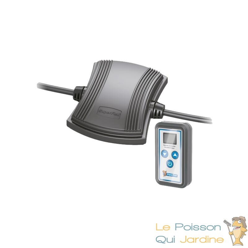 La pompe de bassin est livrée avec une télécommande. Grâce à cette télécommande vous pouvez régler le débit, moduler la puissance électrique, adapter la remontée d'eau ou tout simplement allumer ou éteindre votre pompe de bassin de jardin.