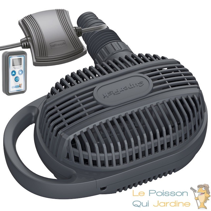 La pompe de bassin est livrée avec une télécommande. Grâce à cette télécommande vous pouvez régler le débit, moduler la puissance électrique, adapter la remontée d'eau ou tout simplement allumer ou éteindre votre pompe de bassin de jardin.