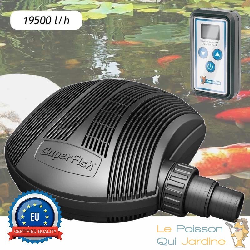 La pompe de bassin est livrée avec une télécommande. Grâce à cette télécommande vous pouvez régler le débit, moduler la puissance électrique, adapter la remontée d'eau ou tout simplement allumer ou éteindre votre pompe de bassin de jardin.
