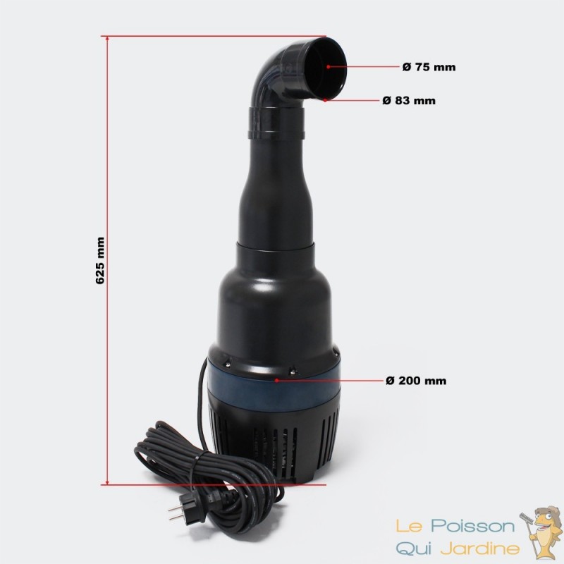 Le modèle de pompe de bassin de jardin est le modèle de la saison 2017 - 2018. C'est une pompe spécifique à haut débit avec une prise d'eau énorme ( à la base ) et un rejet très important aussi.