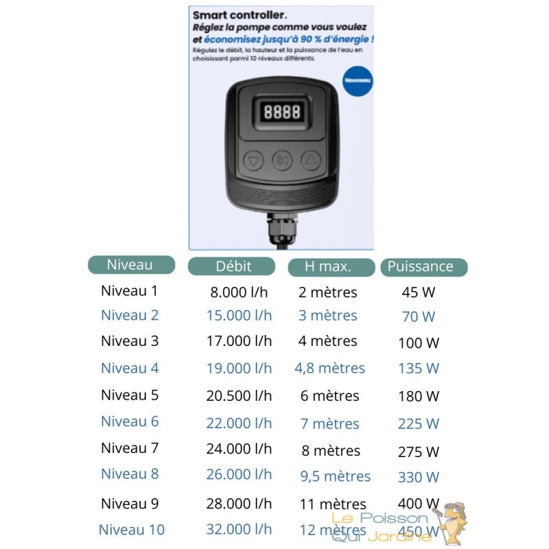 Oui, il dispose d'un affichage digital simple et de touches intuitives permettant d'augmenter ou de diminuer la puissance instantanément sans avoir à toucher à la pompe immergée.