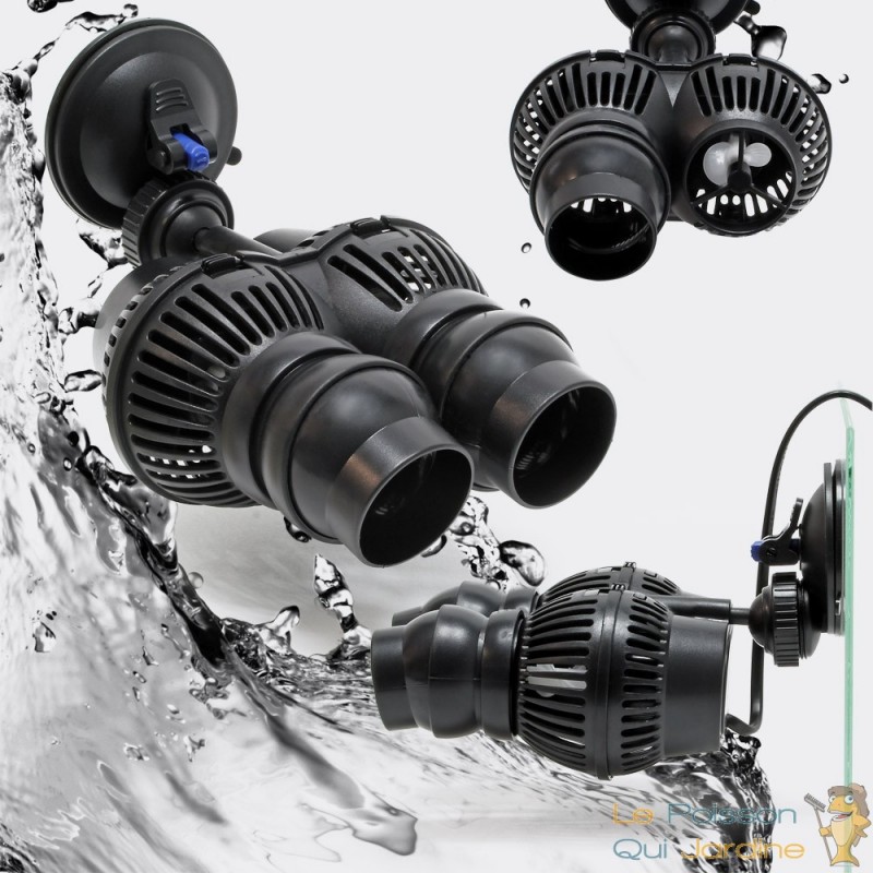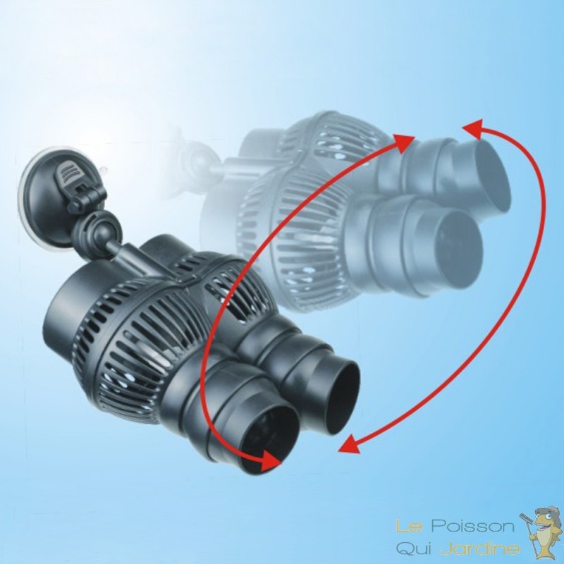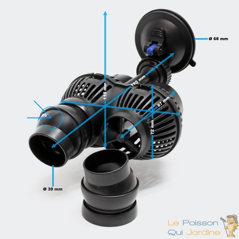 Le design a été conçu pour offrir un flux très large. De plus, la pompe de brassage est complètement orientable. Vu qu'elle est attachée sur sa ventouse ou son aimant par un simple axe, vous pouvez la diriger dans tous les sens et ce, sur 180°.