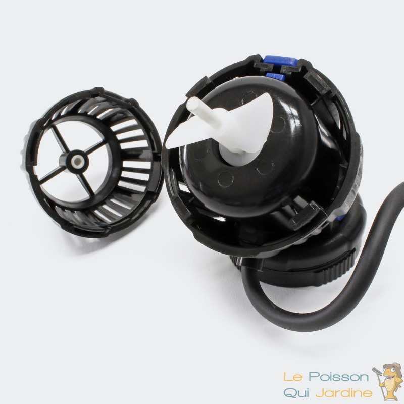 Elle est silencieuse, efficace et robuste. Robuste car les matériaux de fabrication ont été choisis avec soin. L'axe a été fabriqué en céramique ce qui le rend résistant et neutre ( pour la qualité et l'équilibre de l'eau de mer ).