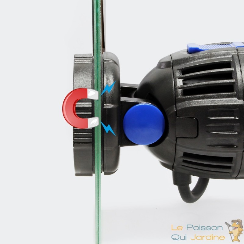 Le design a été conçu pour offrir un flux très large. De plus, la pompe de brassage est complètement orientable. Vu qu'elle est attachée sur son aimant par un simple axe, vous pouvez la diriger dans tous les sens et ce, sur 180°.
