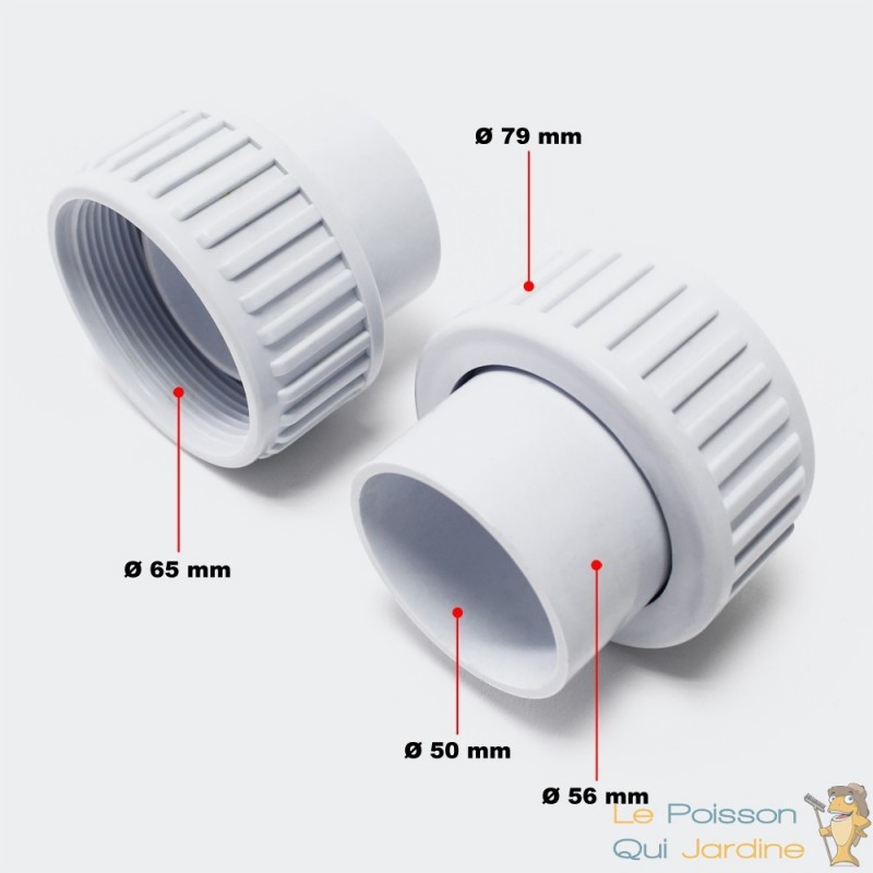 - Diamètre des connexions : 50 et 56 mm extérieur