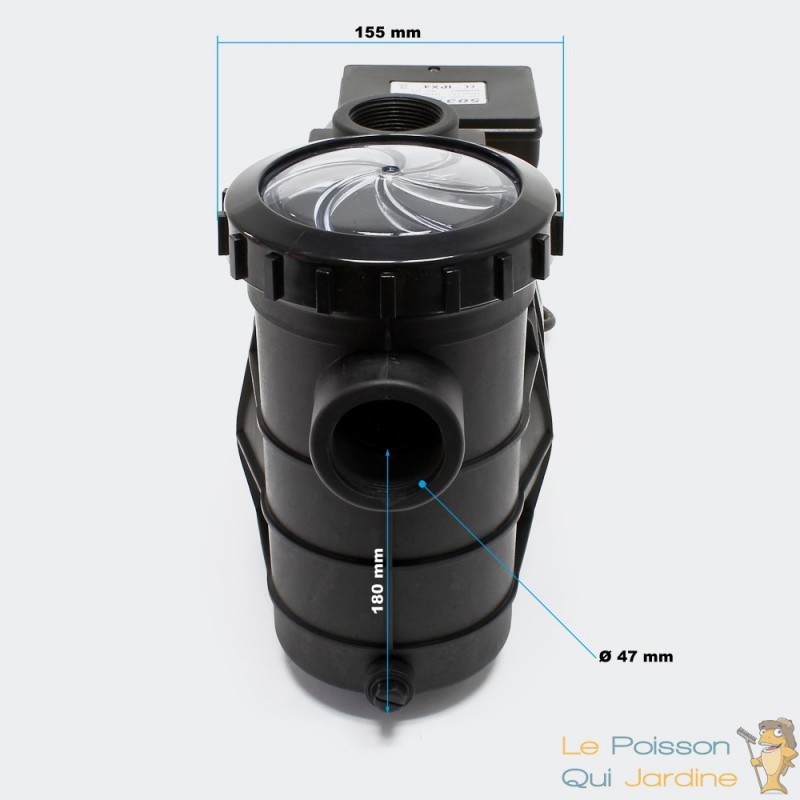 Pompe à eau pour piscine avec un pré filtre intégré. Cette pompe à eau a été étudiée afin d'allier puissance, hauteur de remontée d'eau et basse consommation électrique. Vous pouvez voir la fiche technique en bas de cette description.