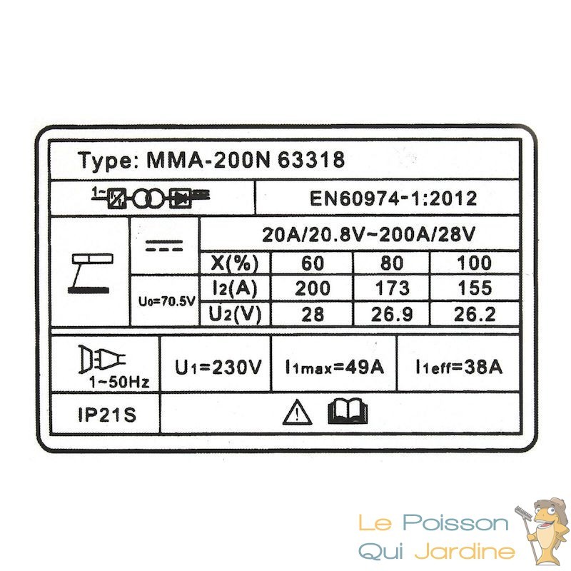 Le poste à souder MMA peut être utilisé avec une prise de courant standard. Le courant de soudage nécessaire dépend de l'épaisseur de la tôle de la pièce à souder et du diamètre de l'électrode utilisée. Ces paramètres peuvent être réglés directement sur l'appareil. Le poste à souder fonctionne avec des électrodes de 1,6 à 5 mm de diamètre, ce qui le rend adapté pour des épaisseurs de tôle allant de 1,5 à 5 mm.