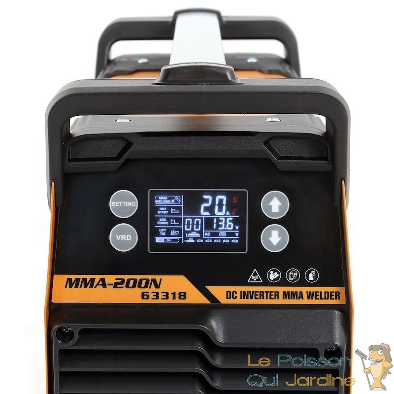Plusieurs fonctions facilitent l'utilisation du poste à souder, notamment l'amorçage de l'arc (TIG-lift et Hot-Start), la stabilisation de l'arc (Arc-force) et la prévention du collage de l'électrode sur la pièce (Anti-stick). Pour une sécurité accrue, l'appareil est équipé d'une protection contre la surchauffe et la surcharge, ainsi que d'un dispositif VRD (réduction des risques de décharge électrique).
