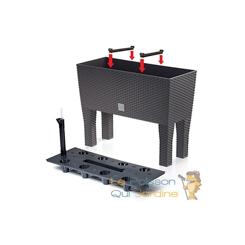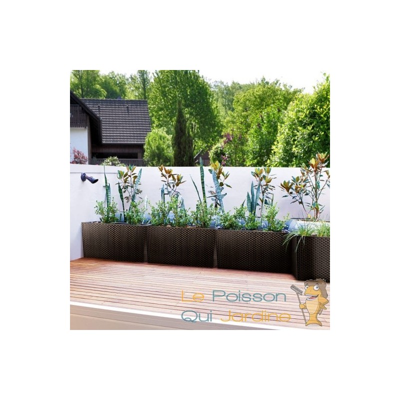 Découvrez une jardinière surélevée en polyrotin de haute qualité, résistante aux rayons UV et aux intempéries. Cette jardinière est équipée de deux éléments pour maintenir la forme du pot et diviser l'espace en 3 compartiments distincts. Son système d'irrigation permet de surveiller facilement le niveau d'eau.