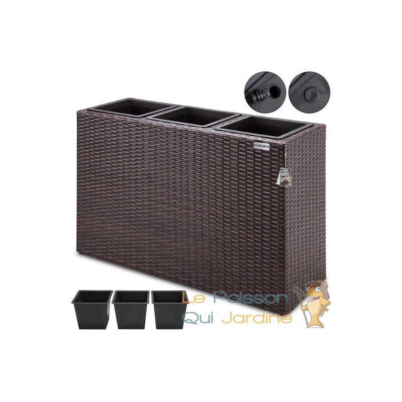 Les pots à l'intérieur du bac à fleurs sont amovibles, chacun étant équipé d'un trou d'évacuation d'eau et d'un bouchon pour une gestion optimale de l'arrosage.