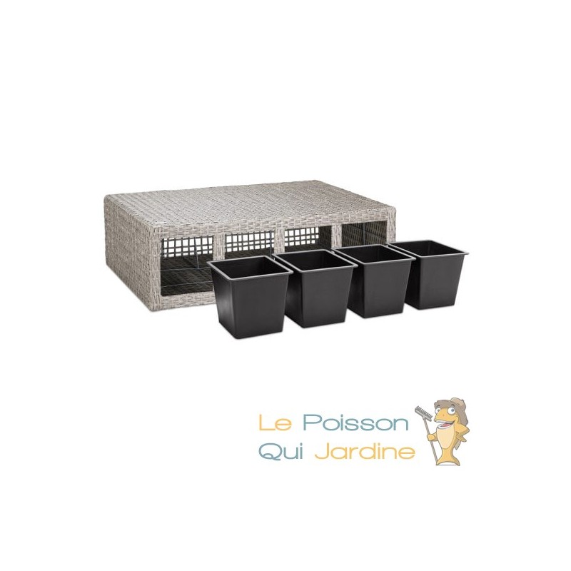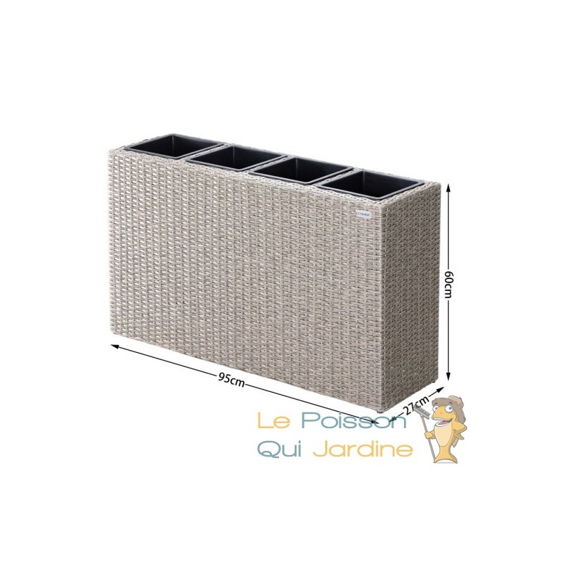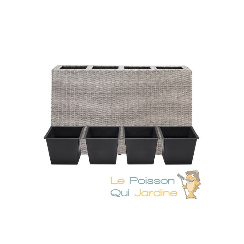 Préparez-vous pour l'arrivée du printemps avec ce superbe bac à fleurs à quatre compartiments en polyrotin. Idéal pour vos plantes, il s'intègre parfaitement aussi bien dans un jardin, sur un balcon, dans un appartement que dans une véranda, que ce soit en intérieur ou en extérieur.