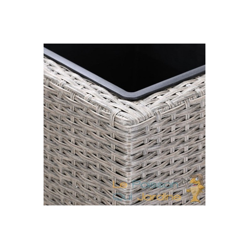 Fabriqué à partir de polyrotin, un matériau robuste constitué de fibres plastiques tressées avec soin, spécialement conçu pour les meubles de jardin, ce bac résiste aux intempéries, aux rayons UV et à la saleté, tout en étant très facile à nettoyer.