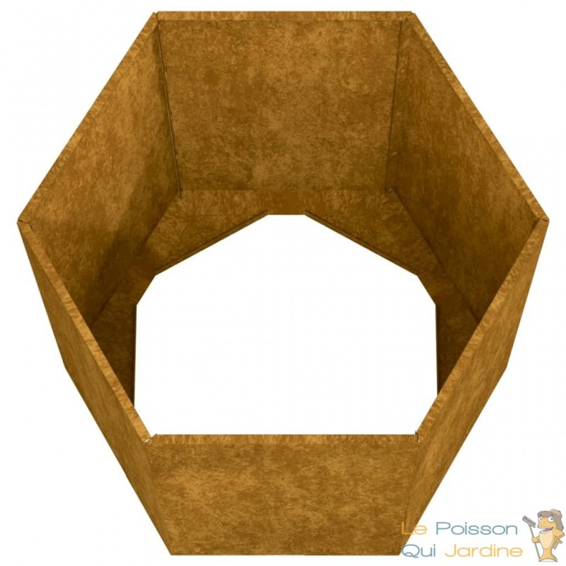 La jardinière de jardin en acier Corten est un choix remarquable pour les amateurs de bricolage souhaitant embellir leurs espaces extérieurs tels que les jardins, les balcons ou les terrasses. Sa forme hexagonale (6 côtés) confère un design moderne et original, se démarquant des traditionnelles jardinières rectangulaires.