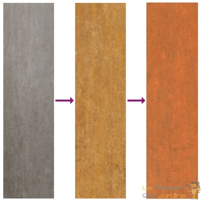Lors de la réception du produit, celui-ci arbore une couleur métallique normale, sans trace de rouille. Avec le temps, la jardinière développera une patine de rouille, lui conférant un caractère unique. Pour accélérer ce processus, l'application d'eau savonneuse et salée sur la surface peut être effectuée.