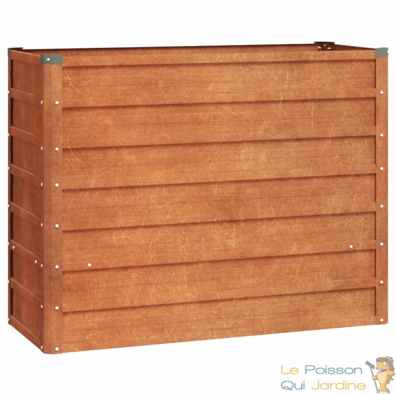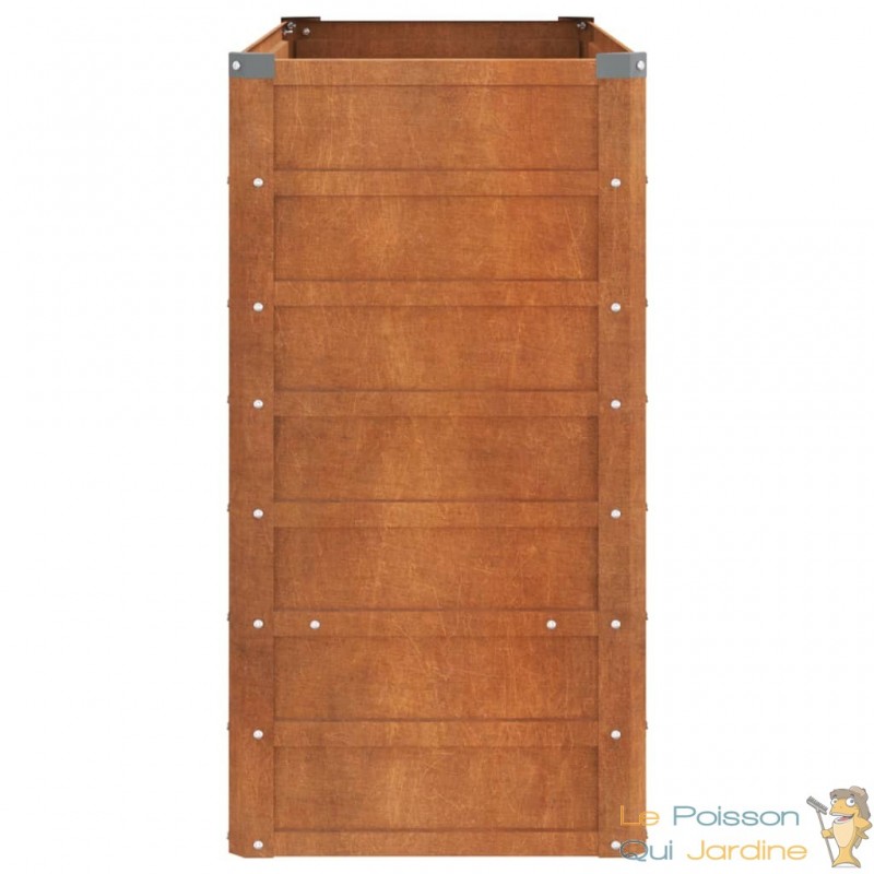 Fabriquée à partir d'acier corten, également connu sous le nom d'acier patinable, cette jardinière offre une durabilité exceptionnelle. L'acier corten est naturellement résistant à la corrosion, formant une couche protectrice dès son exposition aux intempéries. Son aspect marron distinctif attire le regard et élimine le besoin de peinture, réduisant ainsi les coûts d'entretien. Sa robustesse face aux éléments assure une longévité remarquable, résistant vaillamment à l'épreuve du temps.