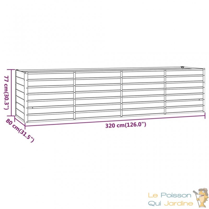 Cette jardinière se distingue non seulement par sa robustesse et sa fonctionnalité, mais aussi par son esthétique unique. Son aspect en relief, évoquant de longues lames de métal superposées, offre un effet moderne et métallique qui attire immédiatement l'œil. Cet aspect remarquable lui permet de se fondre harmonieusement dans divers environnements extérieurs, qu'il s'agisse d'un jardin verdoyant, d'une terrasse contemporaine ou d'un balcon urbain.