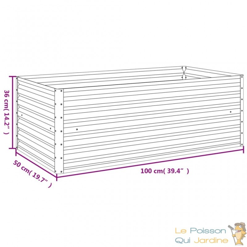 Cette jardinière se distingue non seulement par sa robustesse et sa fonctionnalité, mais aussi par son esthétique unique. Son aspect en relief, évoquant de longues lames de métal superposées, offre un effet moderne et métallique qui attire immédiatement l'œil. Cet aspect remarquable lui permet de se fondre harmonieusement dans divers environnements extérieurs, qu'il s'agisse d'un jardin verdoyant, d'une terrasse contemporaine ou d'un balcon urbain.