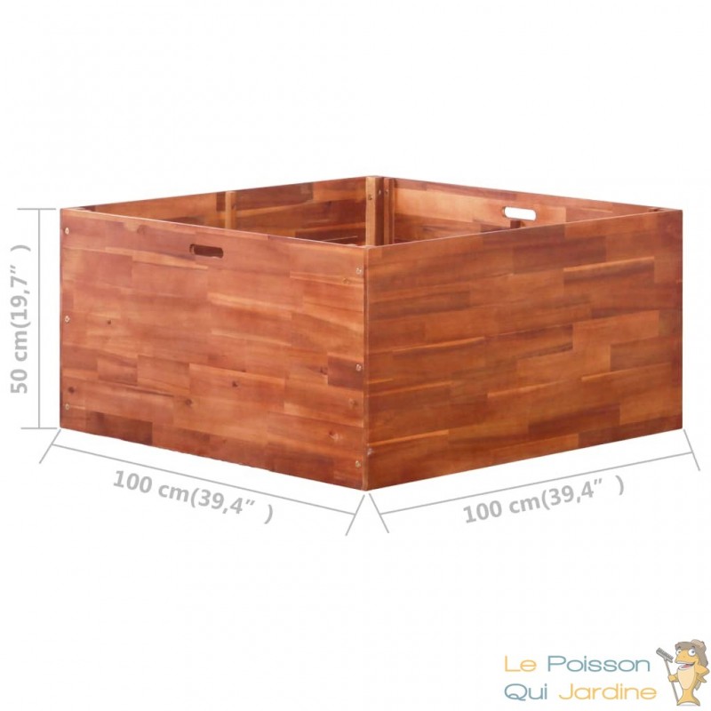 Construite en bois massif d'acacia, cette jardinière ( ou ac à plantes et à légumes ) est non seulement robuste mais aussi résistante aux intempéries, ce qui en fait un choix idéal pour une utilisation en extérieur. La finition à l'huile apporte une belle patine naturelle au bois tout en le protégeant des éléments extérieurs, assurant ainsi sa durabilité et sa longévité. Que vous soyez un jardinier expérimenté ou un novice passionné, cette jardinière surélevée offre un environnement propice à la croissance saine et florissante de vos plantes.