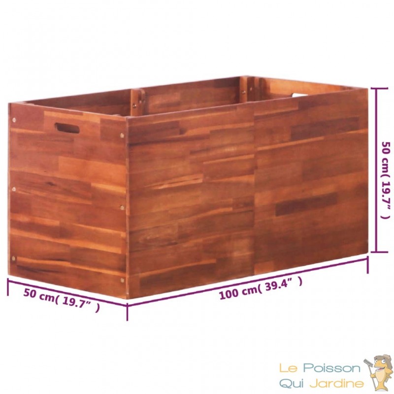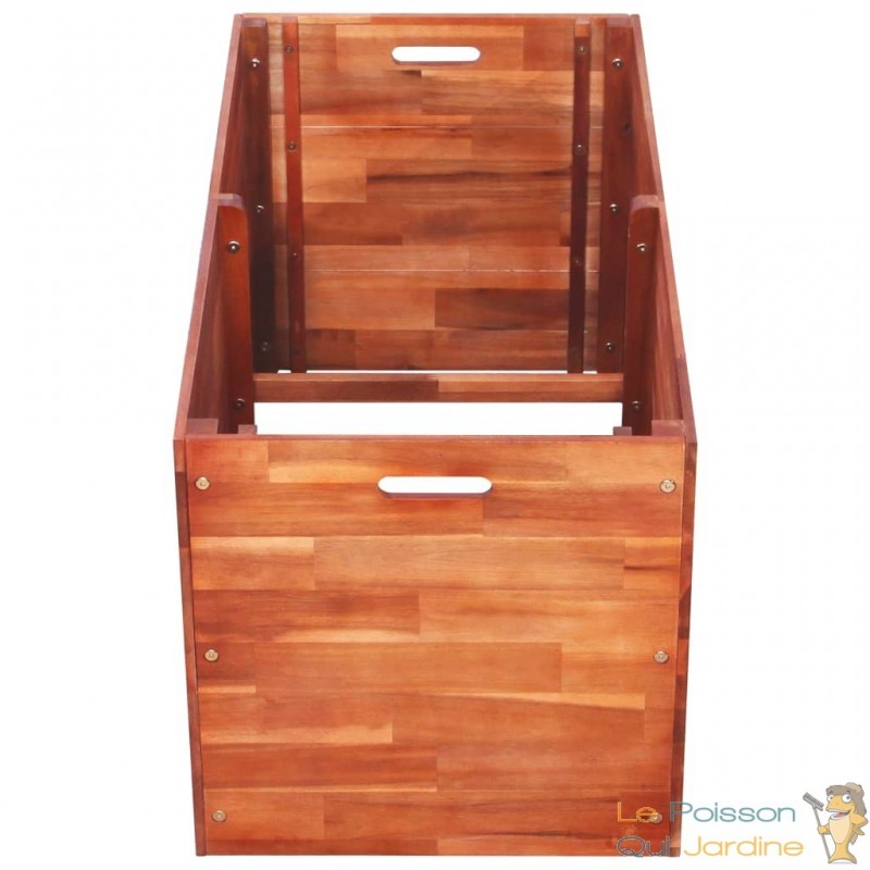 Construite en bois massif d'acacia, cette jardinière ( ou ac à plantes et à légumes ) est non seulement robuste mais aussi résistante aux intempéries, ce qui en fait un choix idéal pour une utilisation en extérieur. La finition à l'huile apporte une belle patine naturelle au bois tout en le protégeant des éléments extérieurs, assurant ainsi sa durabilité et sa longévité. Que vous soyez un jardinier expérimenté ou un novice passionné, cette jardinière surélevée offre un environnement propice à la croissance saine et florissante de vos plantes.
