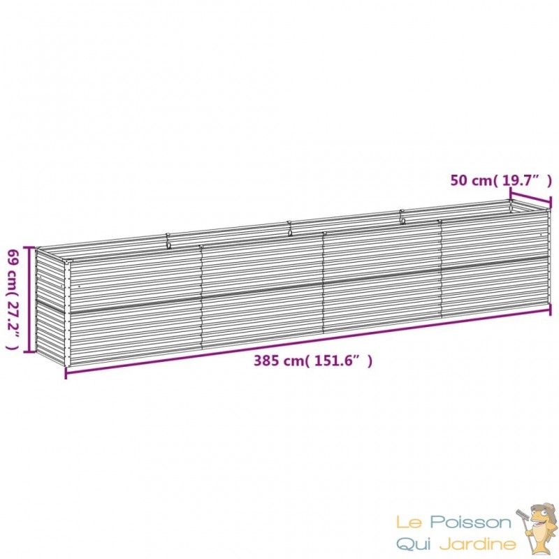 Cette jardinière se distingue non seulement par sa robustesse et sa fonctionnalité, mais aussi par son esthétique unique. Son aspect en relief, évoquant de longues lames de métal superposées, offre un effet moderne et métallique qui attire immédiatement l'œil. Cet aspect remarquable lui permet de se fondre harmonieusement dans divers environnements extérieurs, qu'il s'agisse d'un jardin verdoyant, d'une terrasse contemporaine ou d'un balcon urbain.