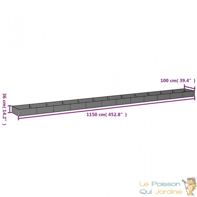 Cette jardinière se distingue non seulement par sa robustesse et sa fonctionnalité, mais aussi par son esthétique unique. Son aspect en relief, évoquant de longues lames de métal superposées, offre un effet moderne et métallique qui attire immédiatement l'œil. Cet aspect remarquable lui permet de se fondre harmonieusement dans divers environnements extérieurs, qu'il s'agisse d'un jardin verdoyant, d'une terrasse contemporaine ou d'un balcon urbain.