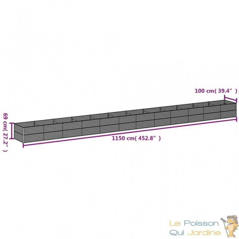 Cette jardinière se distingue non seulement par sa robustesse et sa fonctionnalité, mais aussi par son esthétique unique. Son aspect en relief, évoquant de longues lames de métal superposées, offre un effet moderne et métallique qui attire immédiatement l'œil. Cet aspect remarquable lui permet de se fondre harmonieusement dans divers environnements extérieurs, qu'il s'agisse d'un jardin verdoyant, d'une terrasse contemporaine ou d'un balcon urbain.
