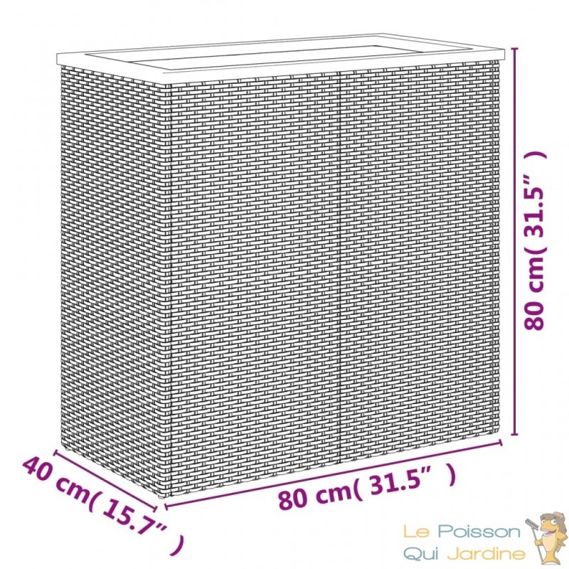 Un des points forts de cette jardinière réside dans sa durabilité. Le matériau utilisé, la résine tressée, aussi appelée rotin poly, résiste efficacement aux intempéries et se nettoie facilement, conservant ainsi sa splendeur extérieure pendant de longues périodes. En outre, son coût est plus abordable que celui d'autres matériaux tout en assurant une qualité exceptionnelle, une praticité et un attrait esthétique indéniables.