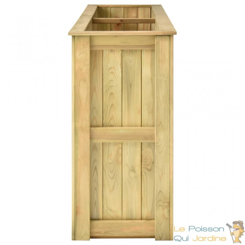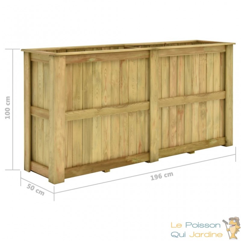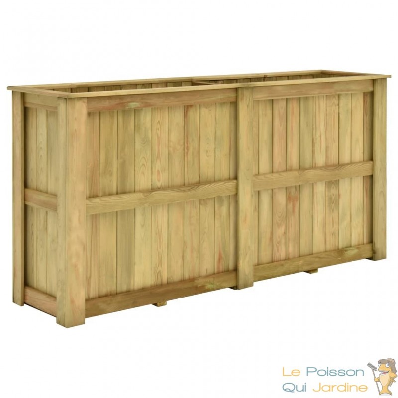Fabriquée à partir de pin massif imprégné, cette jardinière allie à la fois robustesse et élégance. Sa construction solide assure une durabilité exceptionnelle, tandis que son traitement imprégné la rend résistante aux intempéries, lui permettant de défier les éléments saison après saison. Cette résistance lui permet d'être utilisée en extérieur tout au long de l'année, offrant ainsi un refuge sûr pour vos plantes, quel que soit le climat.