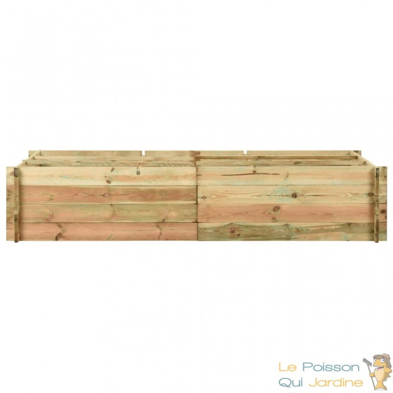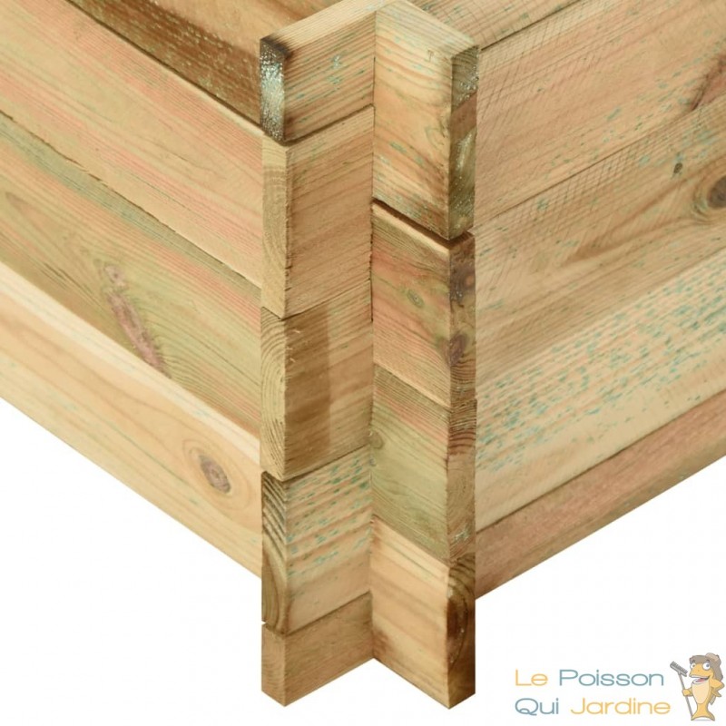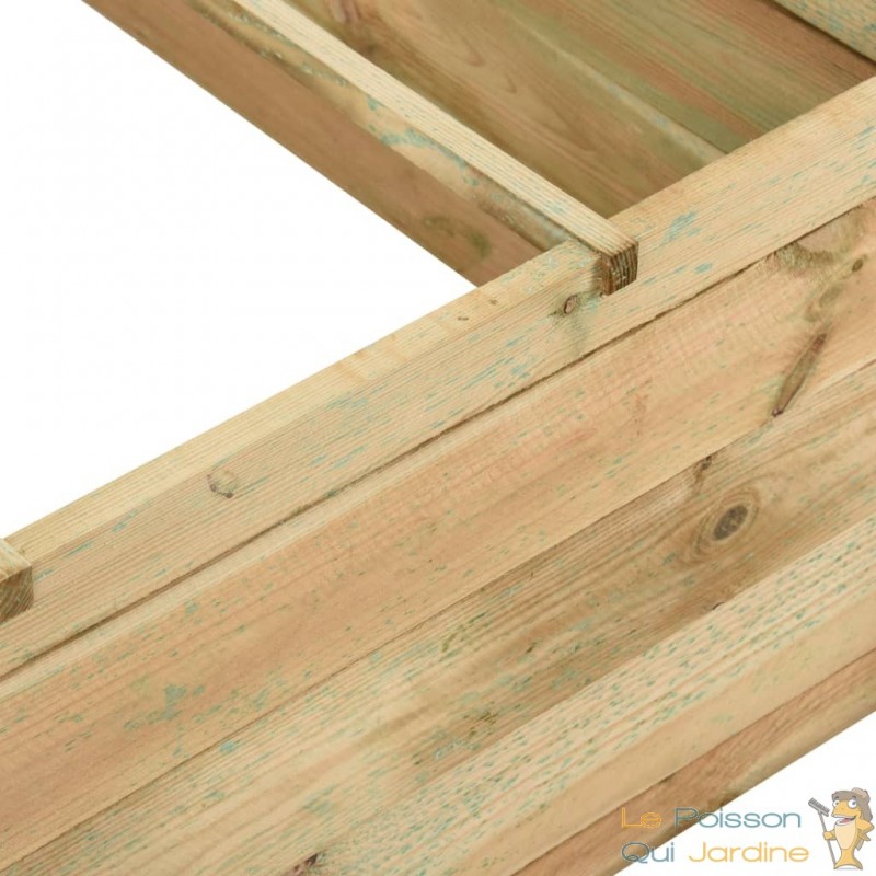 Fabriquée à partir de pin massif imprégné, cette jardinière allie à la fois robustesse et élégance. Sa construction solide assure une durabilité exceptionnelle, tandis que son traitement imprégné la rend résistante aux intempéries, lui permettant de défier les éléments saison après saison. Cette résistance lui permet d'être utilisée en extérieur tout au long de l'année, offrant ainsi un refuge sûr pour vos plantes, quel que soit le climat.