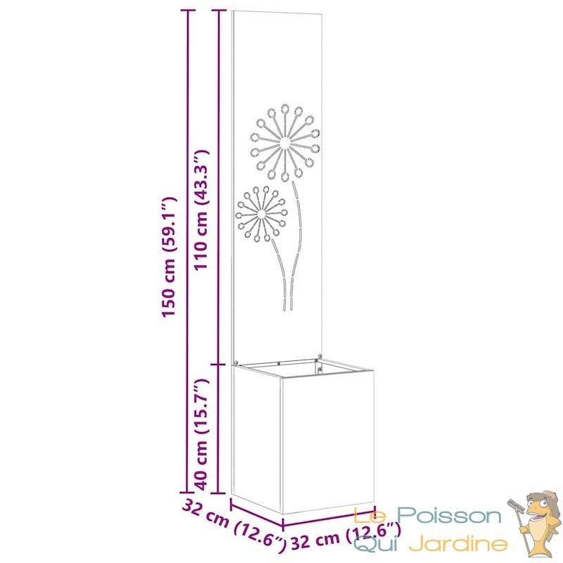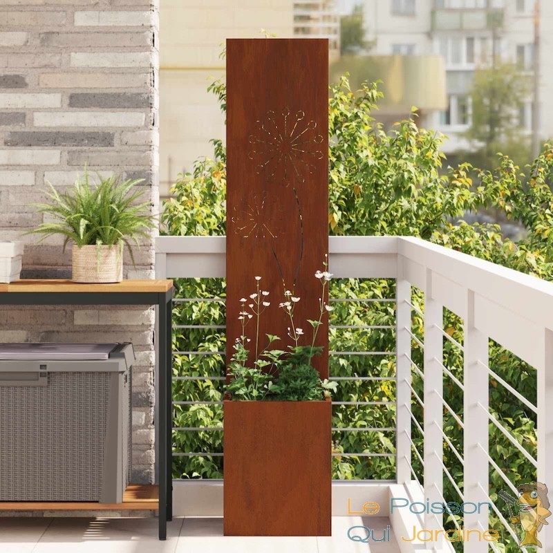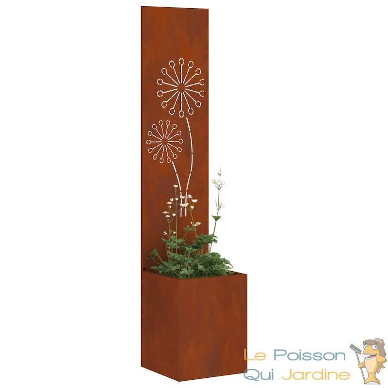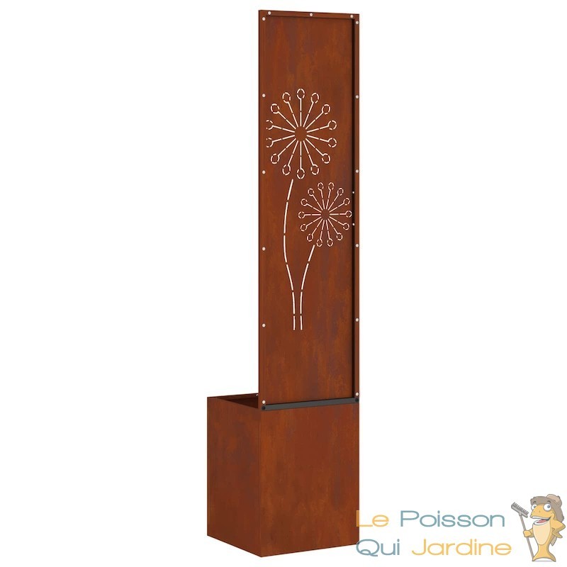 Sublimez votre extérieur avec notre jardinière avec panneau décoratif pissenlit en acier corten. Véritable solution élégante pour personnaliser votre jardin ou votre terrasse, cet écran décoratif allie lignes épurées et minimalisme. Au-delà de son aspect esthétique, il structure votre espace et garantit votre intimité tout en apportant une touche artistique unique qui évoluera avec le temps pour révéler son caractère authentique.