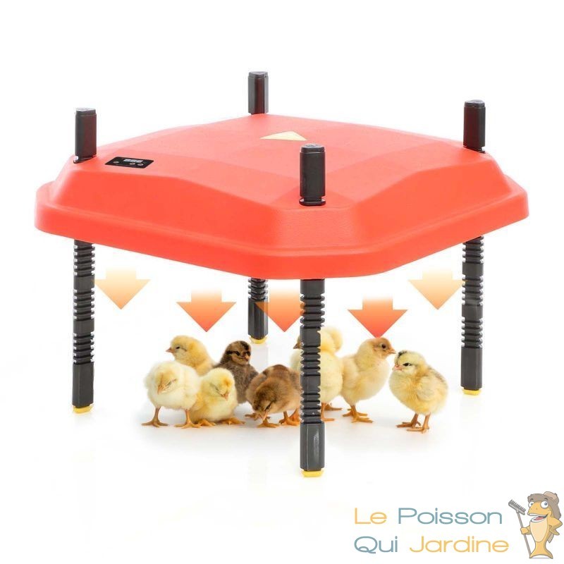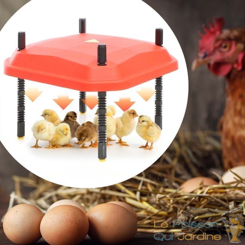 Conçu en plastique de haute qualité, le chauffe-poussins est parfaitement isolé, garantissant une conservation optimale de la chaleur. Son revêtement en aluminium assure une répartition uniforme de la chaleur, tandis que ses pieds stables, munis de capuchons en caoutchouc, préviennent tout risque de renversement, assurant ainsi la sécurité des petits animaux.