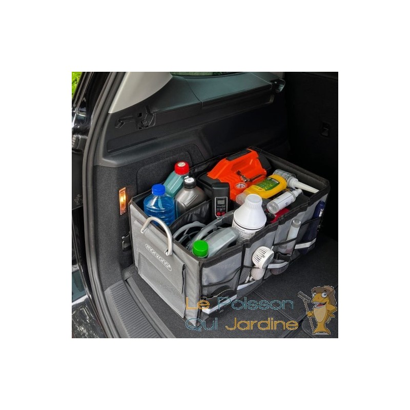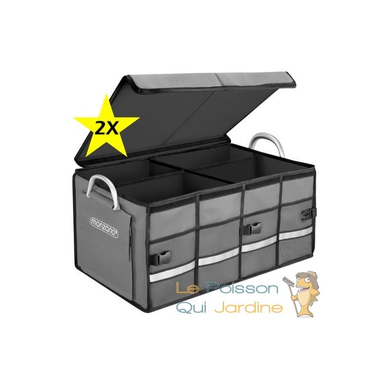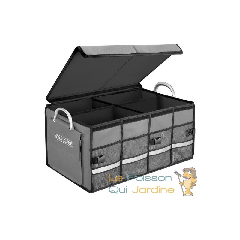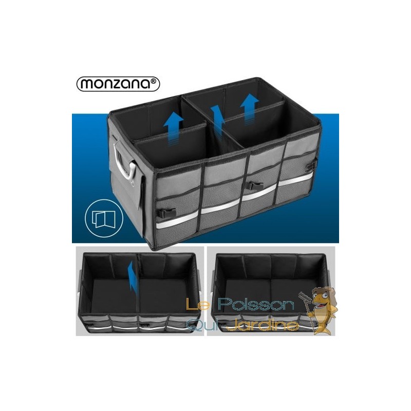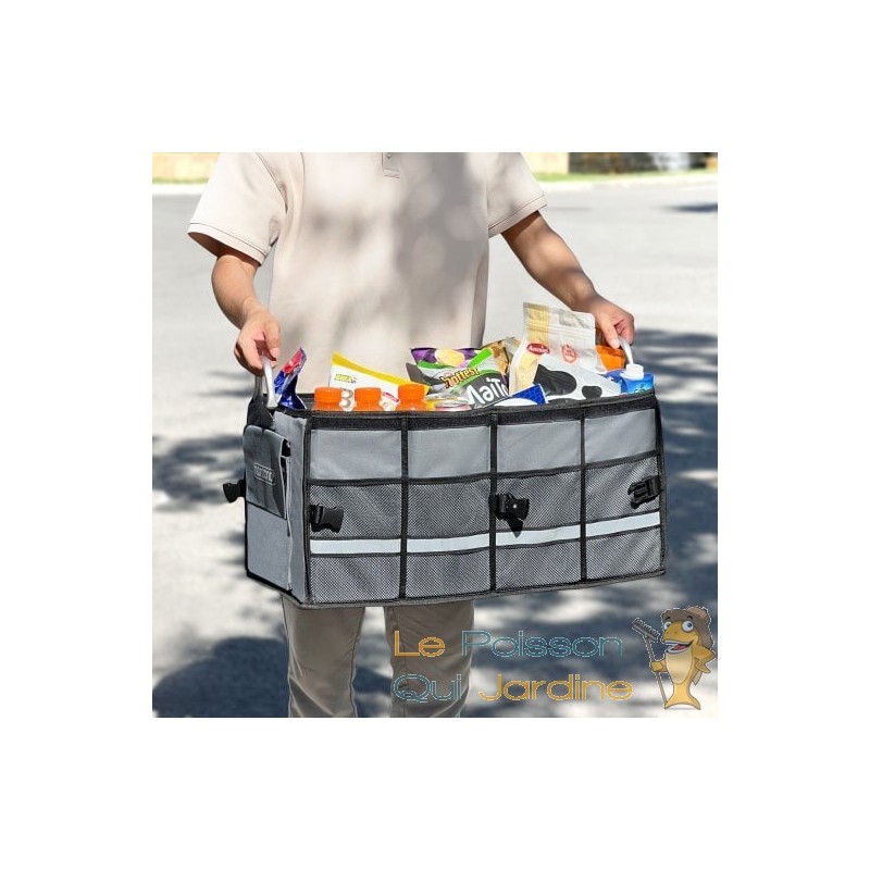 Cet organisateur de coffre est entièrement adaptable grâce à ses deux séparateurs internes et son couvercle amovible. Vous pouvez le réduire de moitié ou le plier entièrement en un clin d'œil grâce aux fermetures à clic.