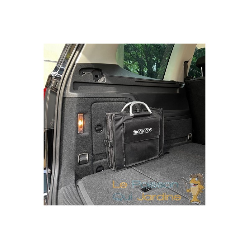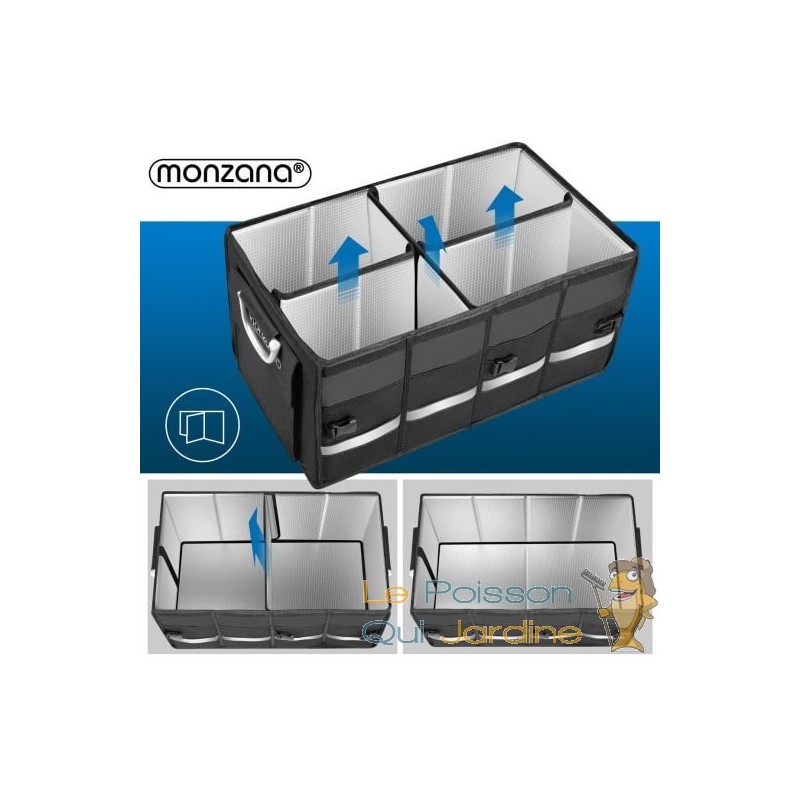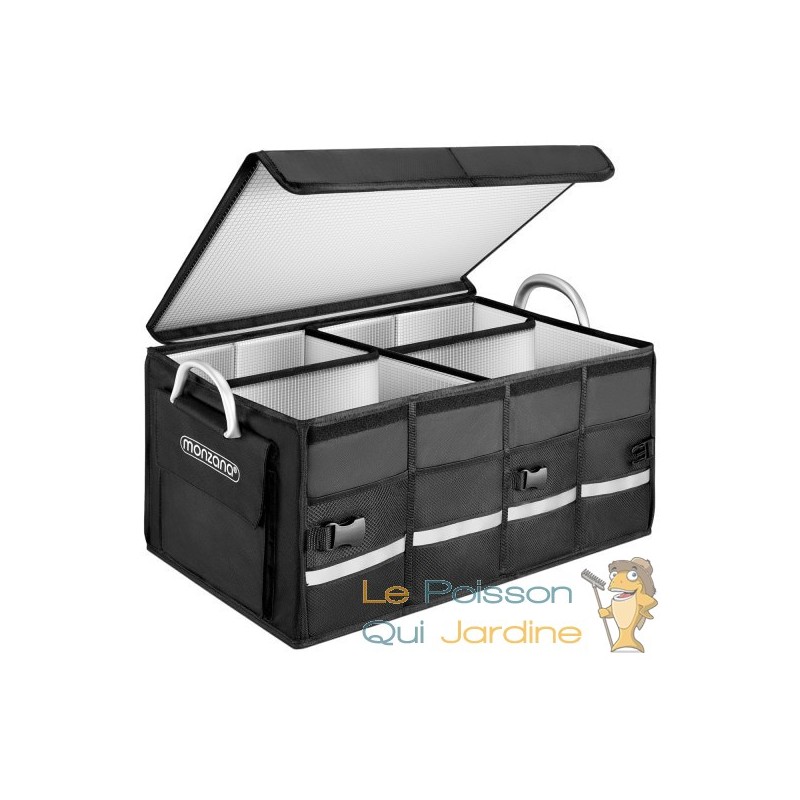 Cet organisateur de coffre est entièrement adaptable grâce à ses deux séparateurs internes et son couvercle amovible. Vous pouvez le réduire de moitié ou le plier entièrement en un clin d'œil grâce aux fermetures à clic.