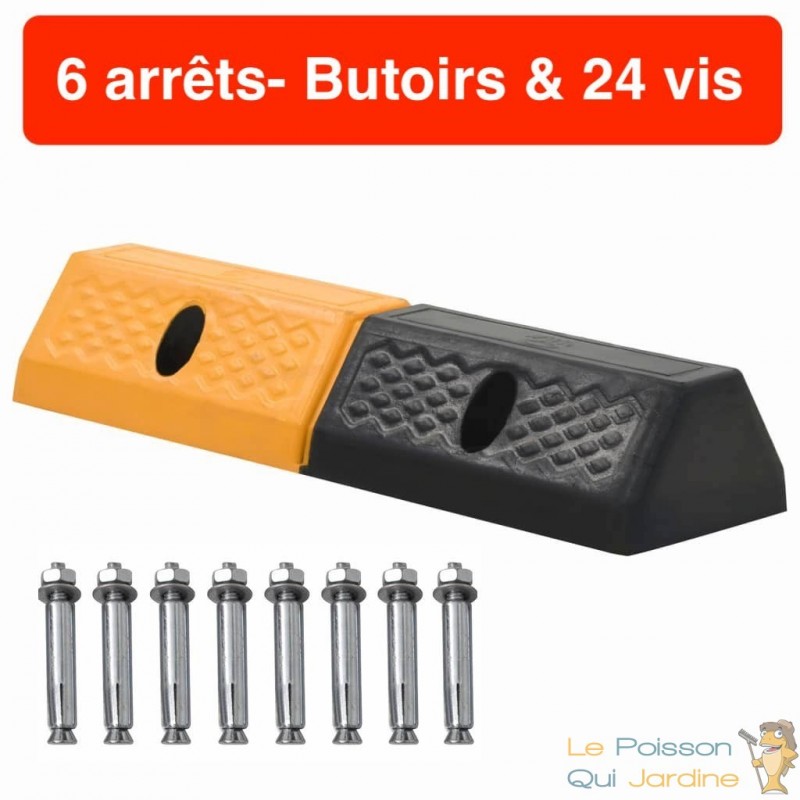 L'ensemble comprend 6 butoirs de stationnement ainsi que 24 vis de fixation, assurant une solution complète prête à l'emploi pour la protection de vos espaces de stationnement. En optant pour ces butoirs, vous investissez dans la préservation de vos surfaces et dans la sécurité de vos véhicules.