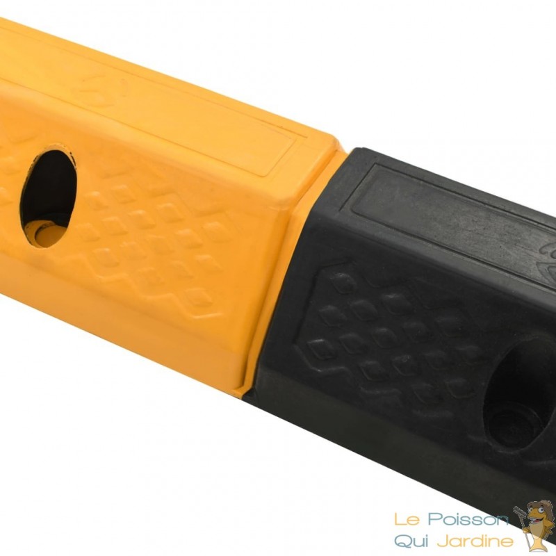 Ces butoirs sont spécialement conçus pour absorber l'impact des véhicules lorsqu'ils reculent ou se garent, minimisant ainsi les dommages potentiels aux véhicules eux-mêmes ainsi qu'aux structures environnantes telles que les murs, les poteaux ou les bordures de trottoir. Leur construction solide et leur capacité à absorber les chocs offrent une protection fiable contre les incidents de stationnement, contribuant ainsi à réduire les coûts de réparation et d'entretien.