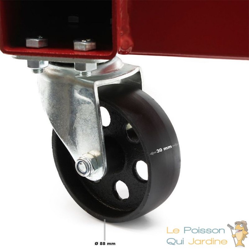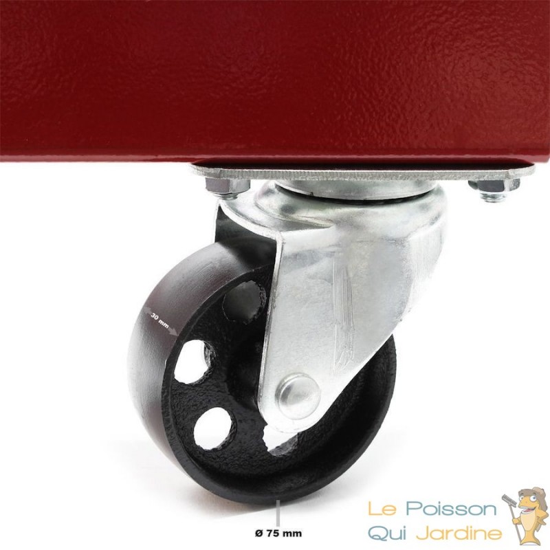 Il possède 4 roues dont 2 directionnelles ce qui facilite le déplacement dans l'atelier.