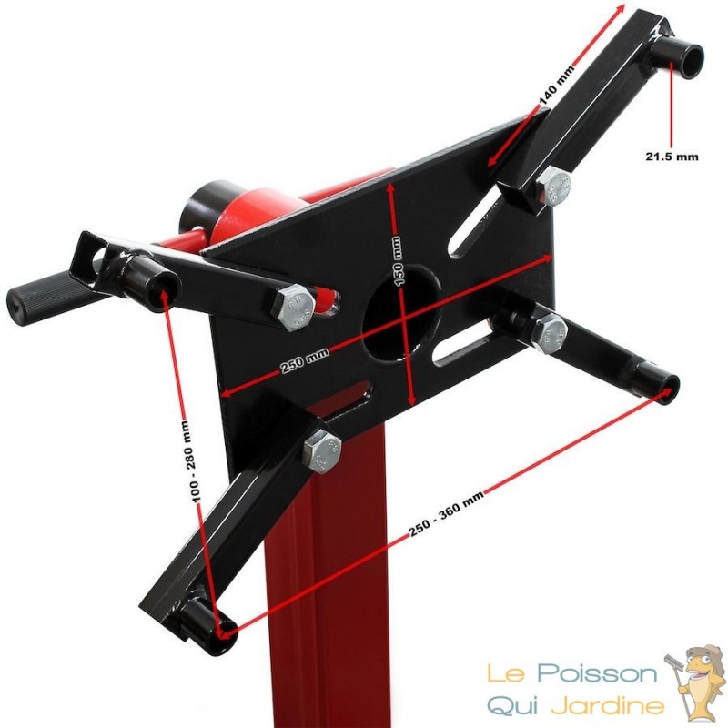Les griffes sont réglables ainsi que la longueur du support ce qui le rend universel et ce qui permet de soulever et de déplacer n'importe quels moteurs. Bien entendu, il est nécessaire et obligatoire de respecter la charge maximale autorisée de 900 kg.
