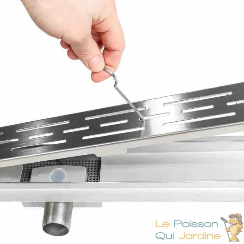 Ce modèle de caniveau de douche linéaire à l'italienne en acier inoxydable offre une conception élégante et moderne. Il est équipé d'un siphon de sol qui permet l'évacuation efficace de l'eau et est accompagné d'un crochet de levage.